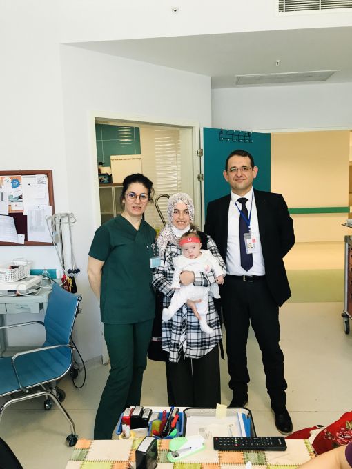 Fethiye'den gelen 7 aylık Down sendromu + geniş inlet VSD + ileri pulmoner hipertansiyonu bulunan hastamız Ayşe Ecrin yaptığımız VSD kapama ameliyatı sonrasında tamamen sağlığına kavuşarak taburcu oldu.