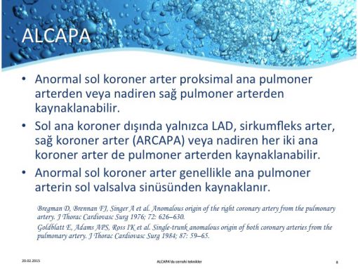 6 yaşında opere ettiğimiz bir hastada mevcut ARCAPA pulmoner arterden ayrılarak koroner buton tarzında aortaya anastomoz edildi.