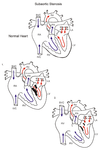 Surgical repair of subaortic stenosis requires cardiopulmonary bypass and aortic cross-clamping. The aorta is opened just above the aortic valve, and the aortic valve leaflets are retracted to expose the obstructive tissue below the valve. Care is taken to excise as much obstructive tissue as possible without damaging the mitral valve apparatus, the atrioventricular conduction tissue or the aortic valve leaflets. Transesophageal echocardiography and pressure measurement comparison are utilized to help assess the adequacy of repair. Aortic cross-clamp time and cardiopulmonary bypass time required to complete repair are usually short.